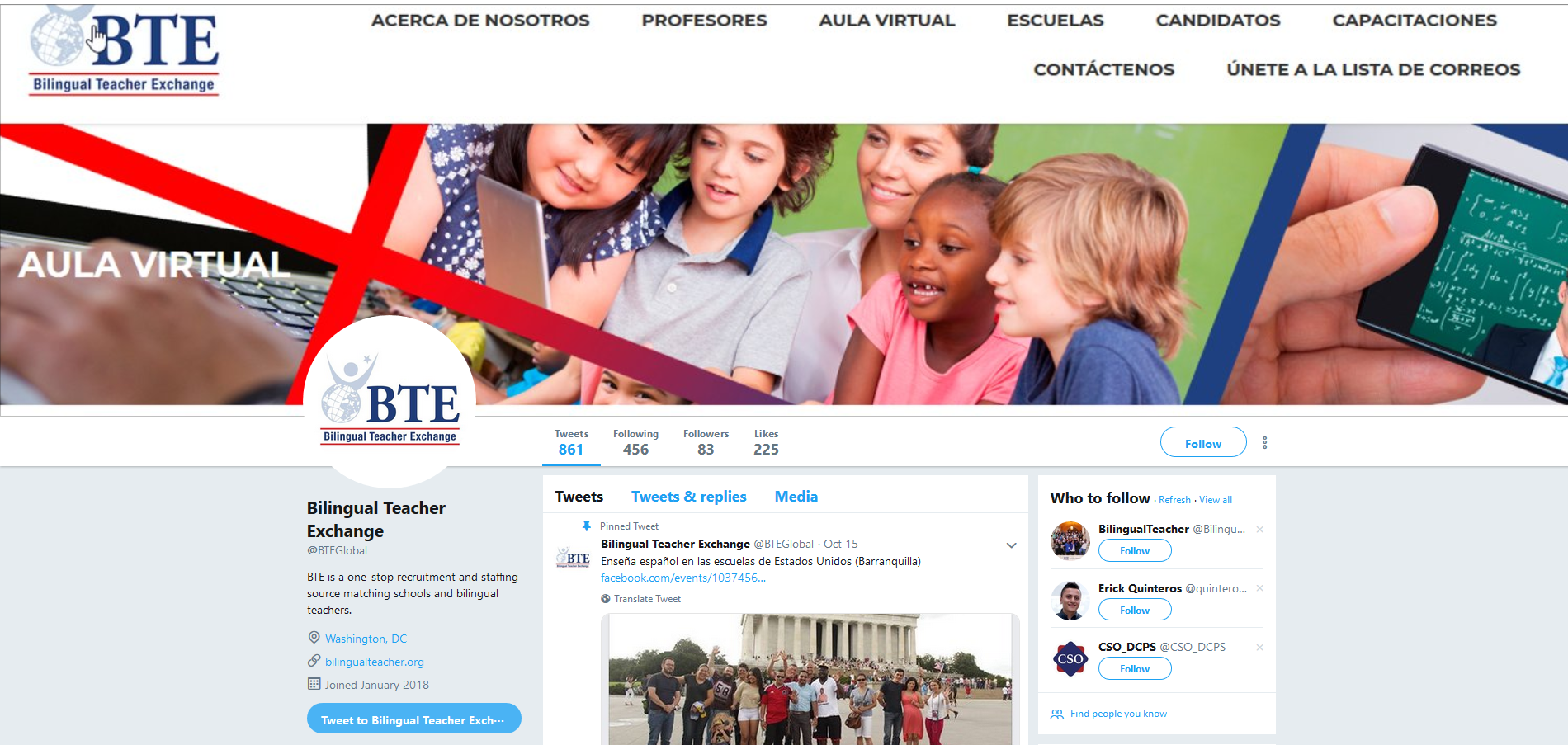 Main services offered: communications (internal and external); branding; social media creation, development and management (Instagram, Facebook, Twitter, LinkedIn, and Indeed); content procurement and creation of stories, press releases, and blogs using Medium.com; photography; email database maintenance; email campaigns; digital marketing; translations; Drift.com bot monitoring; project management; and website design. www.bilingualteacher.org