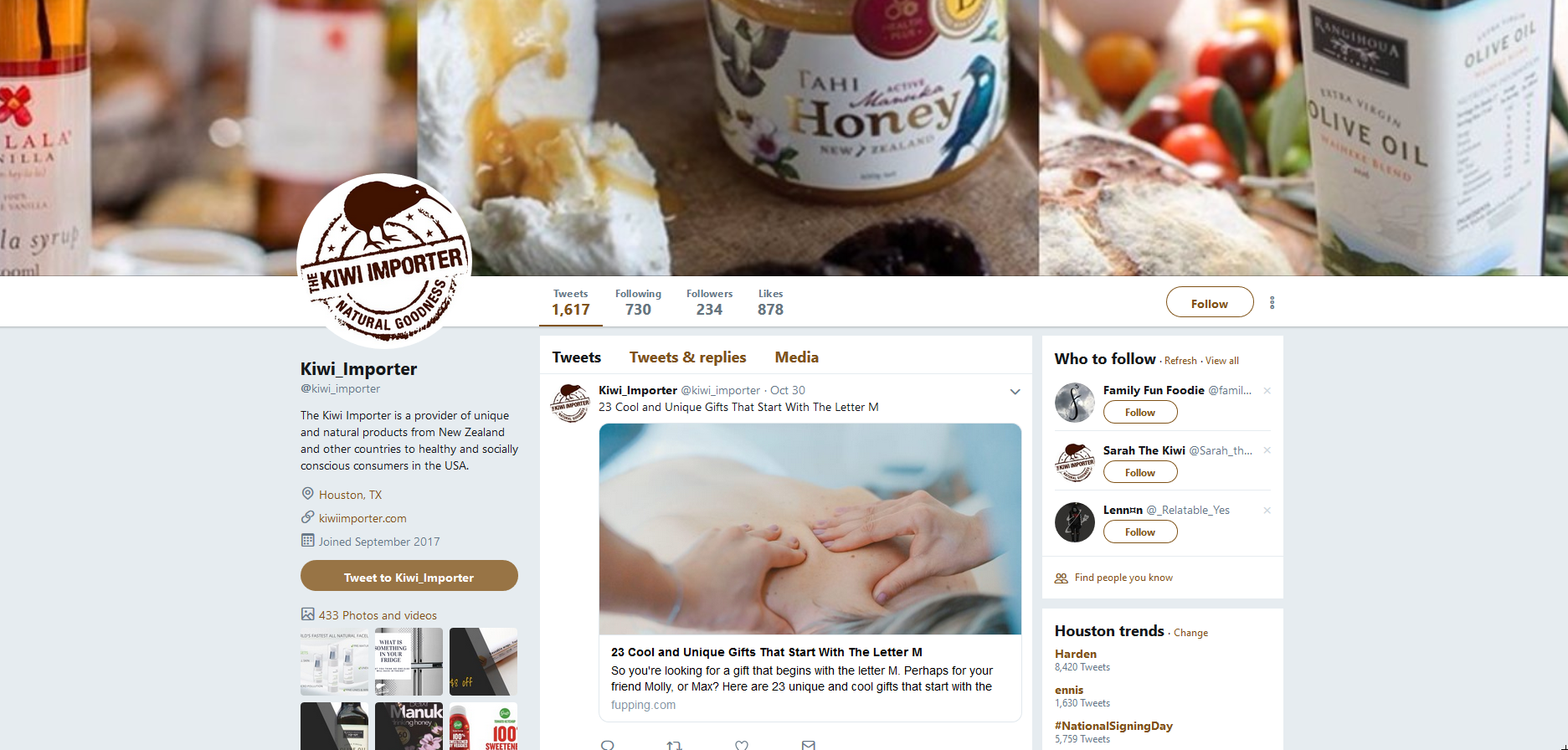 Main services offered: branding; social media creation, development and management (Instagram, Facebook, Twitter, LinkedIn); content procurement and creation of press releases, and blogs; photography; email database maintenance; email campaigns; digital marketing. www.kiwiimporter.com